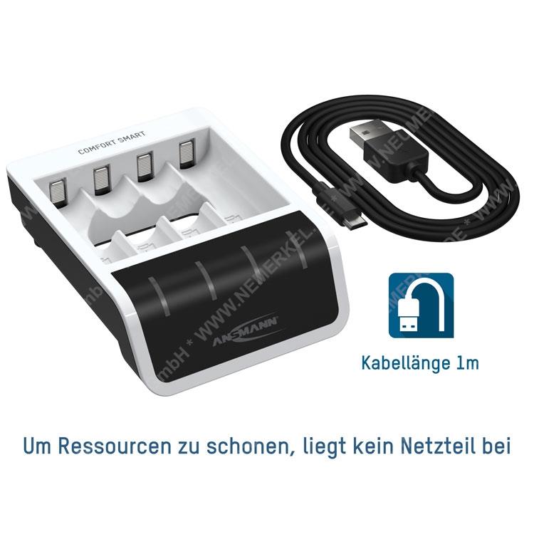 Lieferumfang: Comfort Smart inkl. 4x Mignon AA Akkus 2.100mAh, 1m USB-Kabel und Bedienungsanleitung