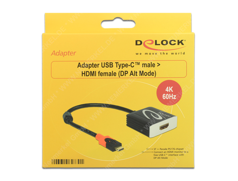 Hinweis: Dieser Delock Adapter ist für den Anschluss eines HDMI Monitors an einen Computer mit USB-C™ Schnittstelle und DisplayPort Alternate Mode Unterstützung geeignet. Somit kann der Adapter an verschiedenen Notebooks wie dem Macbook, Chromebook und ähnlichen angeschlossen werden. Außerdem kann der Adapter auch an einer Thunderbolt™ 3 Schnittstelle betrieben werden.
