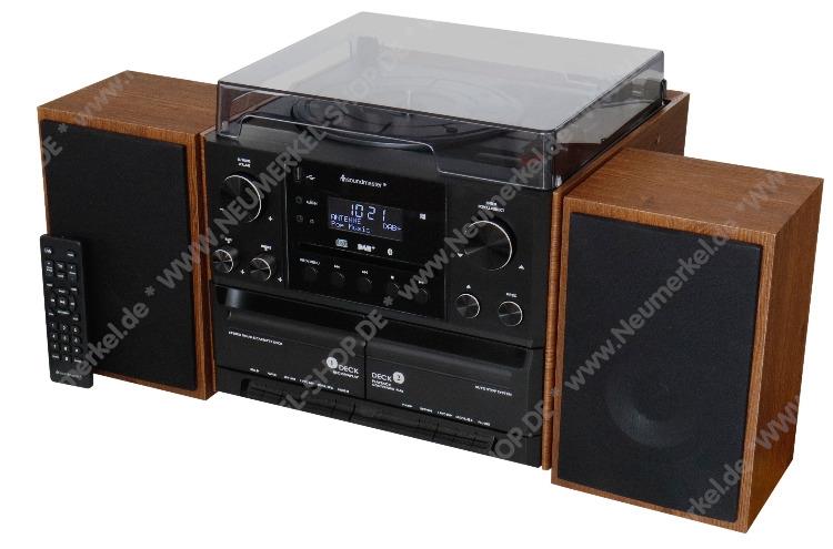MCD 5600 BR Stereo-Audiosystem, 2x5 Watt Nennleistung, Doppel-Cassettenteil, Plattenspieler, CD, MP3, Radioteil, UKW, DAB+, AUX-Eingang, Bluetooth-Schnittstelle, Kopfhörer-Anschluss, USB-Anschluss