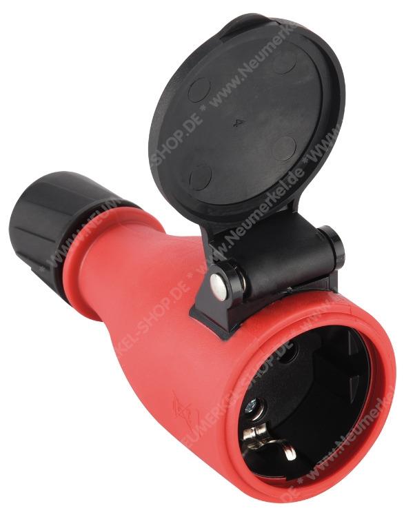 Hinweis: Die Schutzkontaktkupplung ist das richtige Zubehör für die Baustelle und überall dort wo professionell gearbeitet wird. Der rutschfeste und belastbare Hochleistungskunststoff-Griff in Signal-Rot erleichtert das Arbeiten mit dem Stromkabel und ist dank zusätzlichem IP54 Schutz auch für den Außenbereich geeignet.