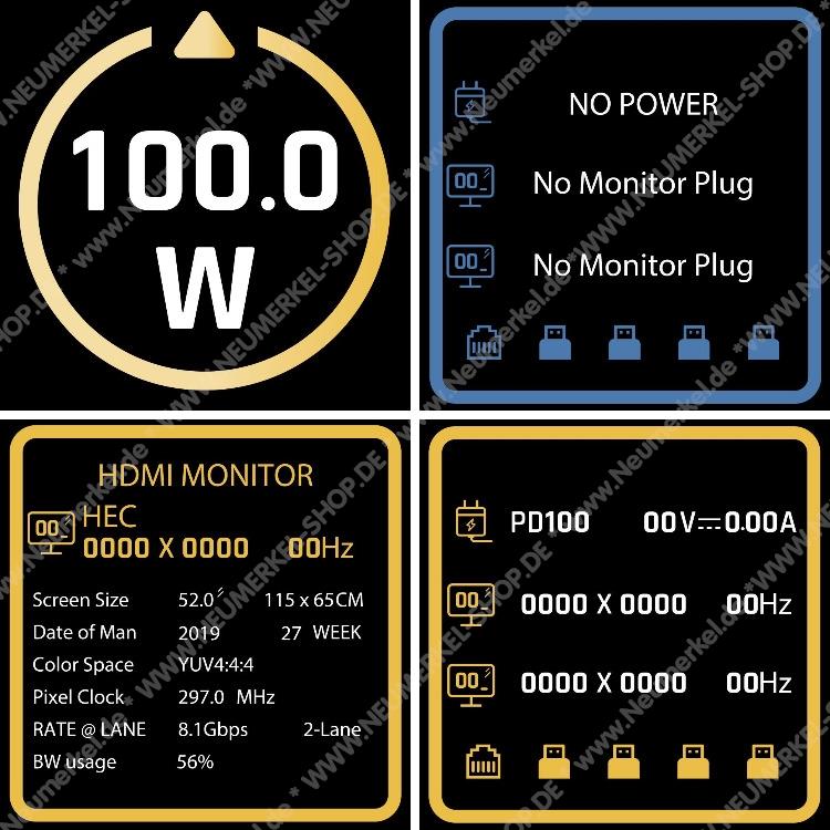 - Video-Auflösung: HDMI 2.0, 3840x2160@60Hz, HDCP 2.3
