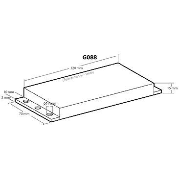 - Abmessungen in (LxBxH) mm: 120x70x15 (ohne Befestigungslaschen)